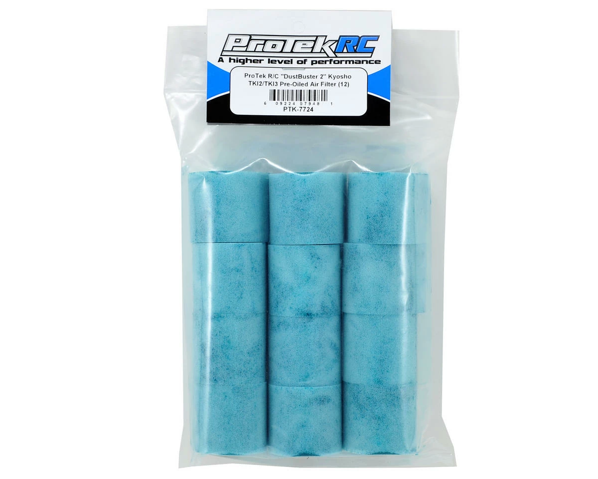 This is a pack of twelve ProTek R/C “DustBuster 2” Kyosho TKI2/TKI3/TKI4 Pre-Oiled Air Filters. In the unforgiving world of 1/8 scale off road, something as simple as the air filter can be the difference between success and failure. The air filter system is the only thing preventing dirt and other contaminants from getting pulled into your vehicles engine. This small component could become the source of an expensive problem in the time it takes to burn through a tank of fuel! Many filter’s are adequate, but when it comes to your engine, adequate is not good enough. Your prized engine deserves the best.